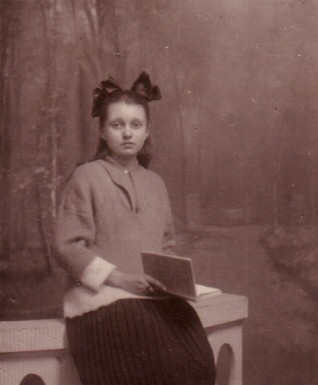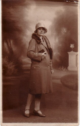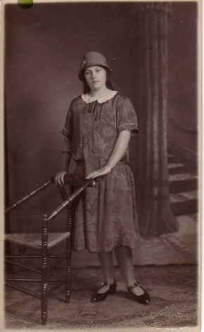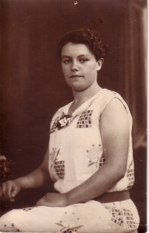 "Kijk, op deze foto ben ik een jaar of 17. Ik ben altijd, tot aan mijn trouwen toe, een stevige meid geweest en ik heb ook stevige handen. Dat komt door het werk. Want als je veel met je handen werkt, kijk maar naar arbeiders, daar heb ik spieren en brede handen van, dat moet je niet opschrijven, maar dat komt van het koeien melken. Want ik heb thuis hard moeten werken." |