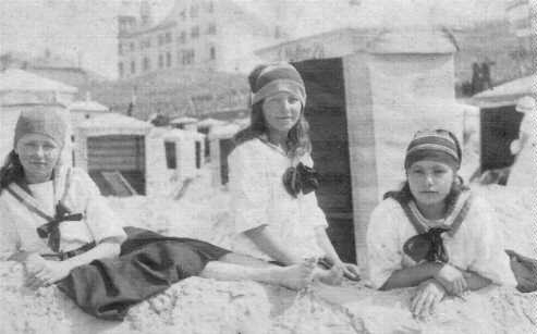 Toch hadden we wel eens een uitje. Dit is op het strand, ik denk dat we een reisje gemaakt hebben, dat ik een jaar of zestien was". Met broers en zusters kom ik er niet uit welke van deze drie meisjes Ma nu was, ik hou het op de meest rechtse. |
