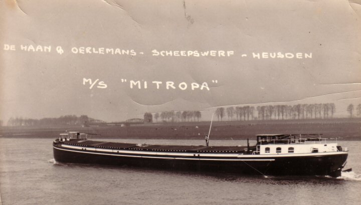 Pa: "Er kwamen nu scheepsbouwers bij me op bezoek om me weer een zeeschip aan te praten. Ik bezocht de werf van De Haan in Heusden en bekeek er een shelterdeckschip in aanbouw. Ondertussen deed ik echter een bod op een Dortmunder motorschip van 966 ton en men ging met mijn bod accoord." Ma: "En de werf had een binnenvaartschip gebouwd. Pa zegt: "Dat is een mooi schip". "Ja", zeggen ze,"maar jij bent toch van de zeevaart, jij moet toch geen binnenschip". We hebben die ook bekeken. s' Avonds gingen we van de werf af. Pa zegt: "Nou, ik zal op allebei een bod doen". Toen heeft ie op allebeidend een bod gedaan. De volgende ochtend belden ze op en zaten we vast aan het binnenschip." Broer Willem meldt een van Pa gehoord detail dat een licht werpt op het spontane karakter van de koop van de Mitropa. "Het schip werd aan Pa door de Rotterdamse Bank aangeboden omdat de opdrachtgever voor de bouw failliet was gegaan." Daarom zat de werf er vast mee in de maag wat de prijs voor Pa gunstig kan hebben beïnvloed. Waar Pa trouwens van de werf van De Haan in Heusden spreekt, Ma het over de werf van De Haan en De Moor heeft, spreekt broer over de werf van De Haan en Oerlemans, het latere Verolme Heusden, onderdeel van het RSV concern. | |